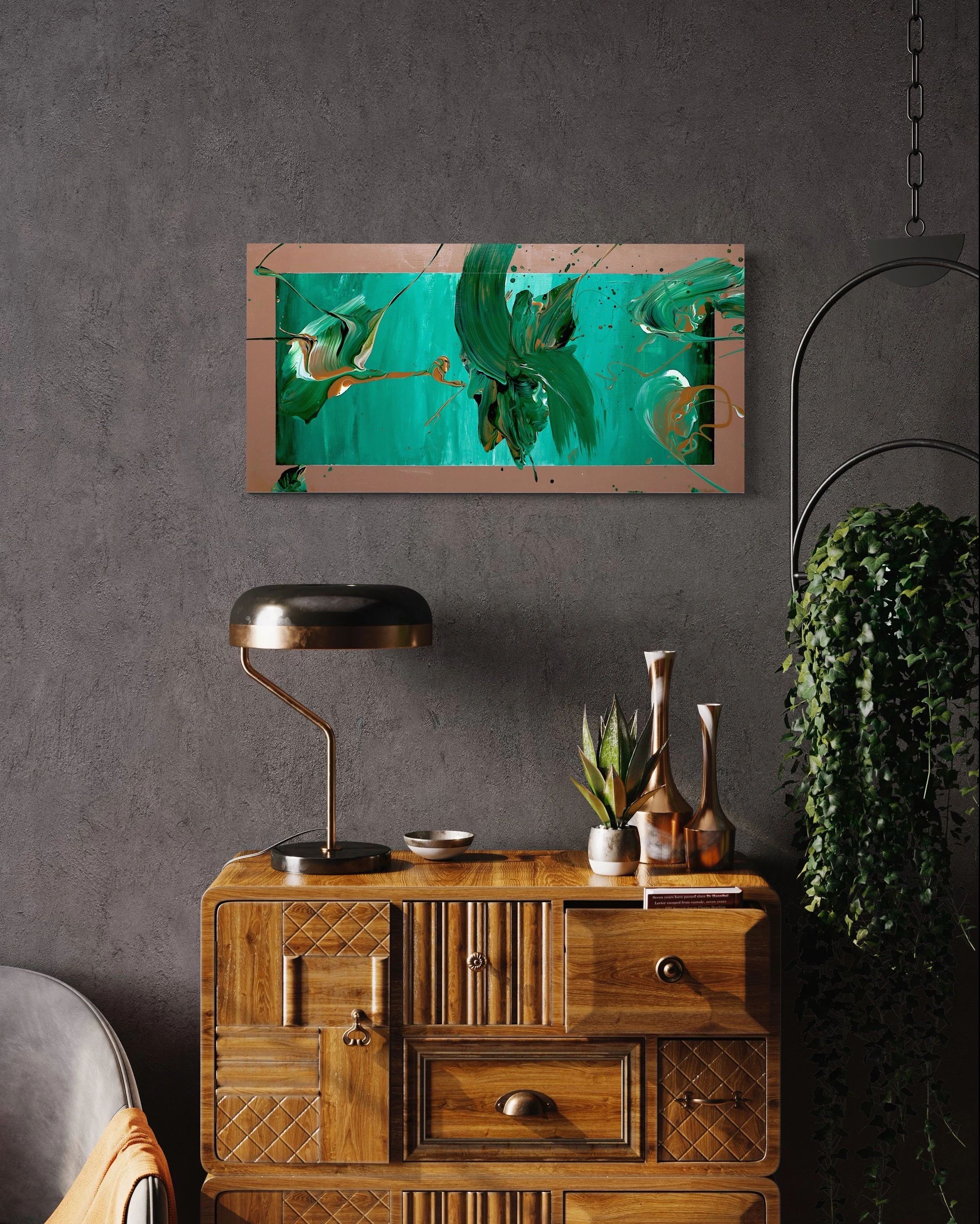 Acrylic abstract on 15x30x1-3/4 in gallery canvas